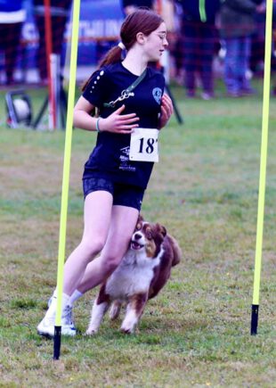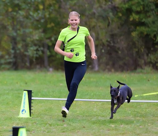 Pia und Cookie starteten im Sprintvierkampf in der Jüngstenklasse, leider konnten die Beiden bei den Geräten nicht fehlerfrei bleiben und gingen mit 8 Fehlern Rückstand auf dem 4. Platz ins Verfolgungsrennen.